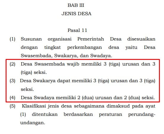 Jumlah perangkat desa, seperti Kaur dan Kasi itu sudah dibatasi jumlah maksimal dan minimalnya.