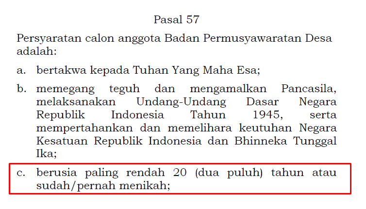 Sebagai contoh, Permendagri Nomor 110 Tahun 2016 tentang Badan Permusyawaratan Desa memberikan petunjuk dan pedoman tentang tugas dan fungsi BPD, serta tentang struktur organisasi dan tata kerja BPD.